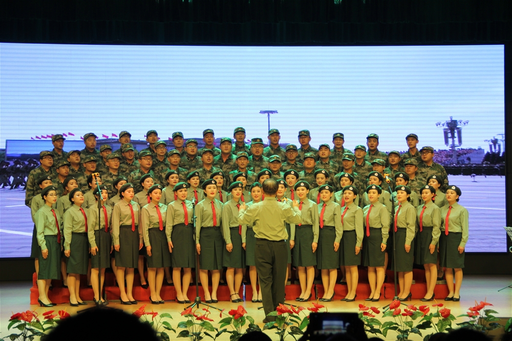 晚上19:40,訓練有素的東方合唱藝術團帶來的節(jié)奏明快、鏗鏘有力的《放飛夢想》、《為祖國而準備》、《沒有共產(chǎn)黨就沒有新中國》三首大合唱在朱啟高老師的指揮下拉開了整場晚會的帷幕。隨后,陜北歌唱家崔苗《陜北是個好地方》、《走西口》,榆林民間藝術研究院舞蹈《軍嫂》,崔峰銘獨唱陜北民歌《吉祥》、《趕牲靈》,王曉怡獨唱《蘆花》、《繡紅旗》,嗩吶獨奏《士兵與花兒》,舞蹈《守望春天》等精彩節(jié)目串聯(lián)緊密,現(xiàn)場歌聲嘹亮,氣氛熱烈和諧,不時贏得現(xiàn)場觀眾的陣陣掌聲和歡笑聲。
