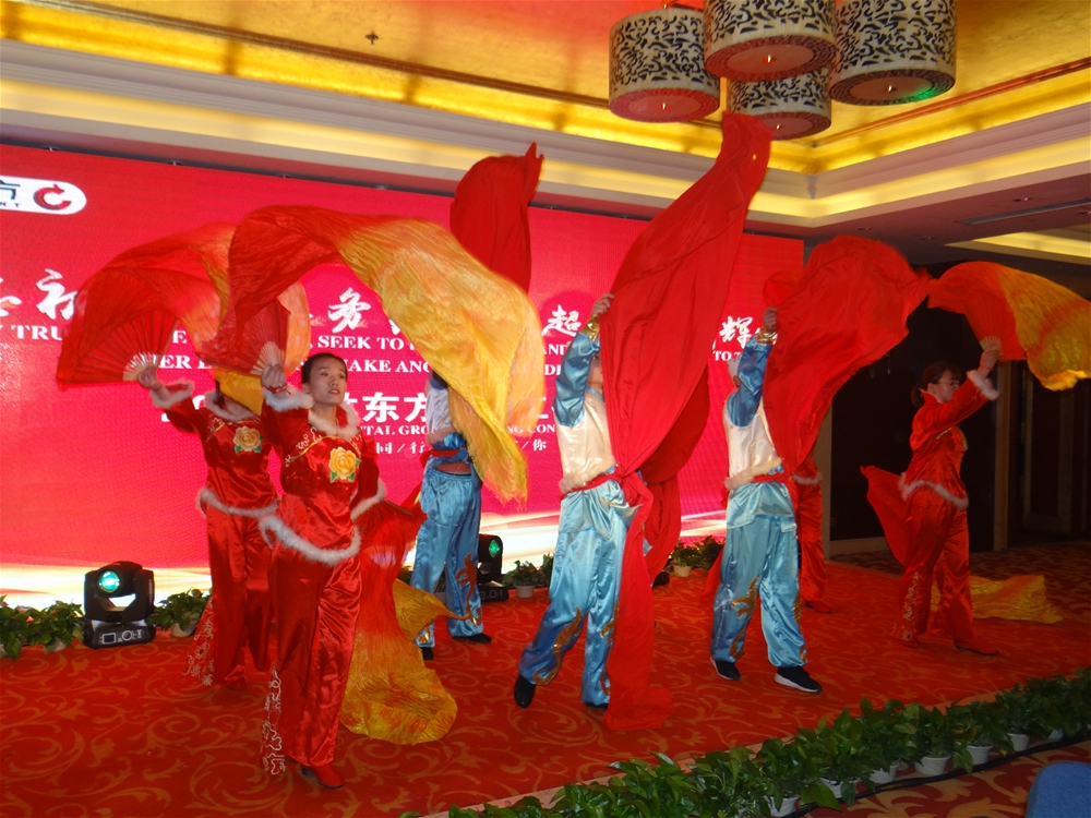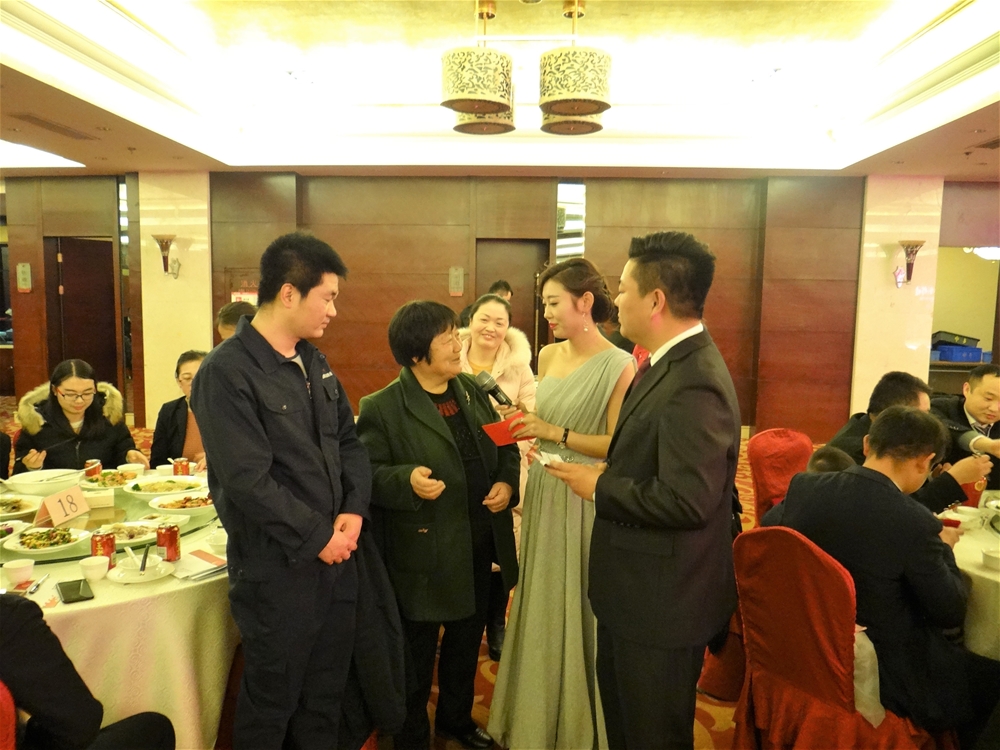 會議結(jié)束后,一曲《曲阜孔儒風(fēng)》把觀眾帶入熱鬧非凡的喜慶氛圍中,晚宴活動正式開始。整臺晚會由感恩篇、歡樂篇、游戲篇和愿望篇四個章節(jié)組成,現(xiàn)代舞蹈、陜北大秧歌、木偶表演、歌曲演唱,以及詩歌朗誦等節(jié)目輪番登場,精彩紛呈,高潮迭起,給在場的所有人帶來了一場別開生面的視覺盛宴。更驚喜的是,參加晚宴的員工都收到一封賀總的親筆信,讓人倍感親切。晚宴中問候員工家屬的環(huán)節(jié)更讓員工收獲了一份感動,這份來自公司、來自領(lǐng)導(dǎo)的濃濃關(guān)懷,一定會激勵他們在新的一年里,與勤奮攜手,讓業(yè)績攀升;與拼搏并肩,讓盈利翻番。