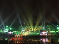 演出現(xiàn)場(chǎng)大氣恢弘,流光溢彩,明星們載歌載舞,觀眾臺(tái)座無虛席。噴泉隨著音樂此起彼伏,燈光穿過榆溪坊水上秀場(chǎng),把大地照亮,在五顏六色的燈光中,林肯禮賓車更加光彩四射!