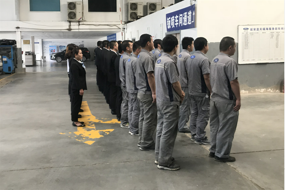 2018年5月14日上午8:30,延安藍天福海車間內(nèi),傳來了陣陣整齊的吶喊聲,在董事長助理何琦經(jīng)理的帶領下,藍天福海進行早間訓練,提升藍天福海團隊的勢氣。